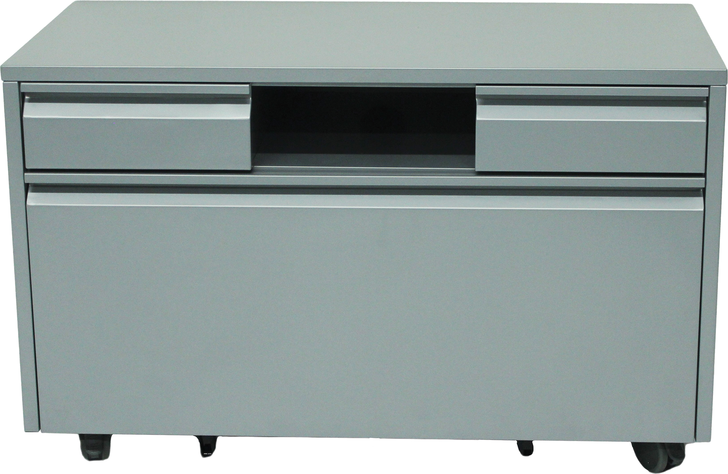 - Storage Solution: The Closed Caddy is a great way to keep your desk organized and hide all those messy items. With the large lateral file at the bottom, two (2) smaller box files at the top for those small office items, and an open shelf featuring through wire access grommet between the two (2) box files, this closed storage solution is a perfect solution for any office.